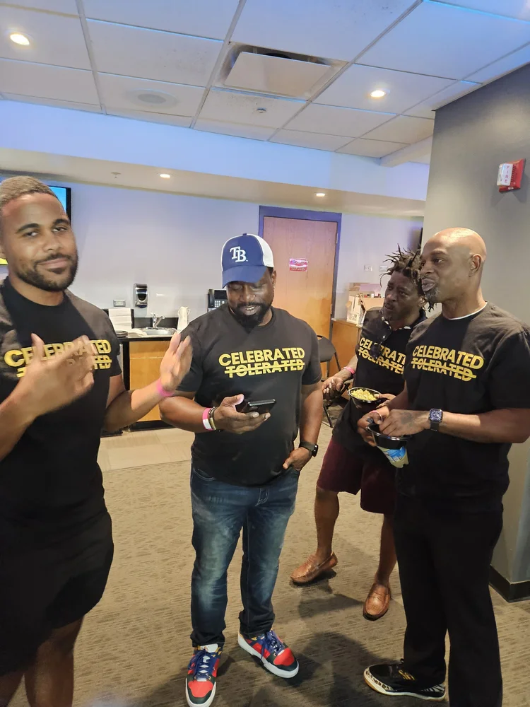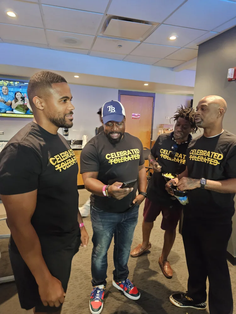 Celebrated Not Tolerated St. Pete hosted a group outing to a Tampa Bay Rays game, creating a relaxed and joyful space for Black men to connect outside of everyday pressures. The experience fostered camaraderie, conversation, and shared celebration, reinforcing the importance of community, balance, and collective joy.